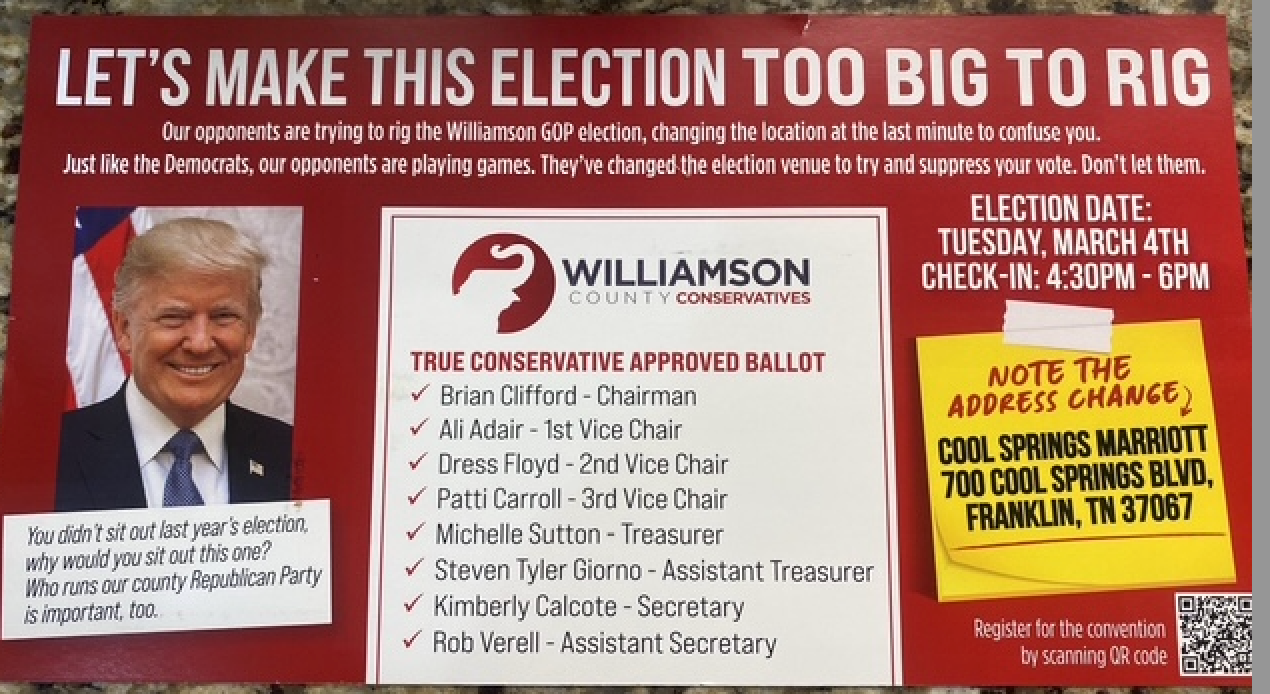 For people who are not involved in Williamson County politics, the message from the WCC is, by design, very concerning and confusing. Being told that the current and future leadership of the WCRP is unethical and corrupt is an obvious smear campaign. aiming to sow seeds of doubt in the minds of voters as to the integrity of the current board and the Elevate 2025 slate.