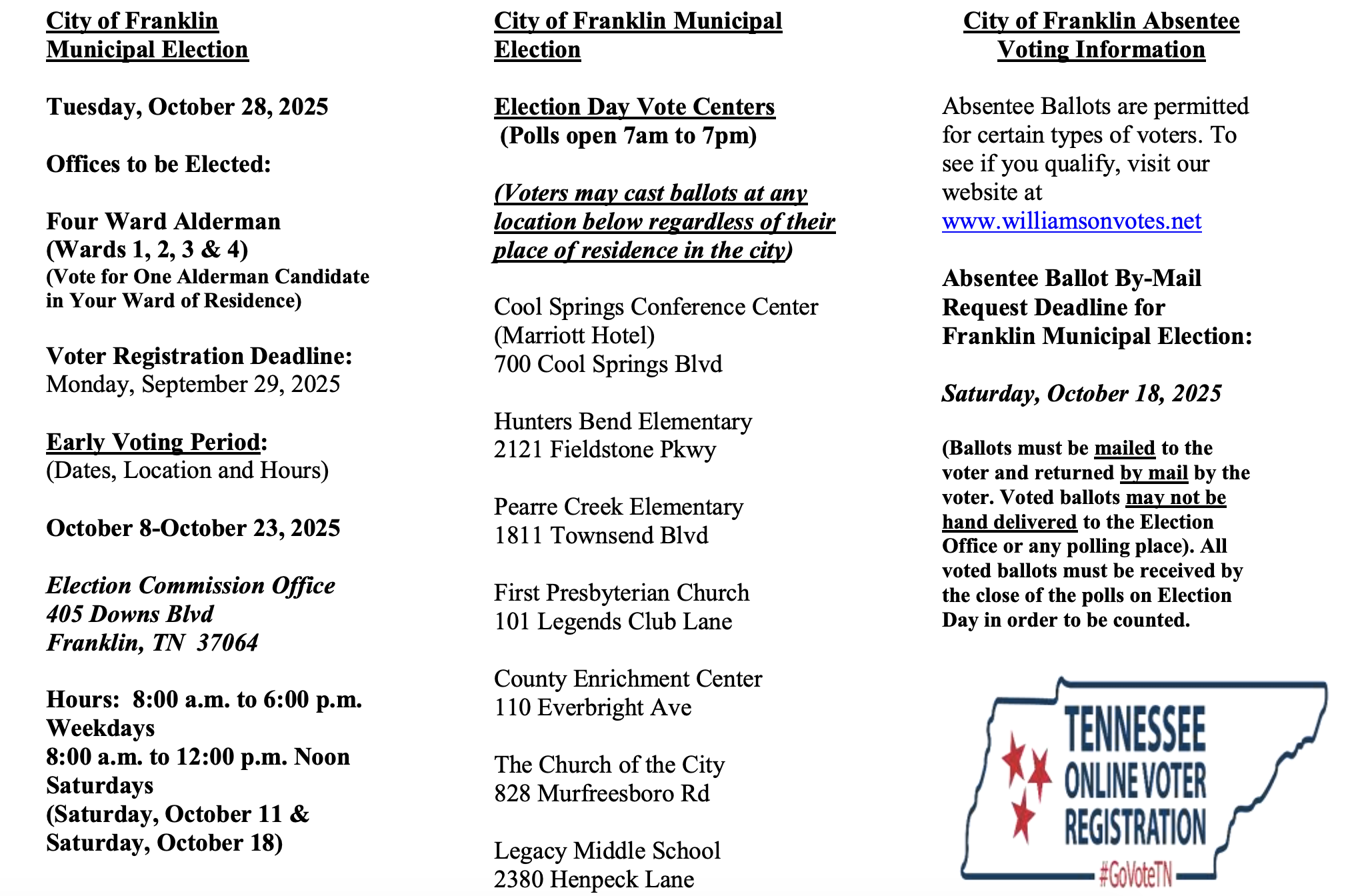 Election Commission Agenda Report by Frank Limpus Franklin, TN